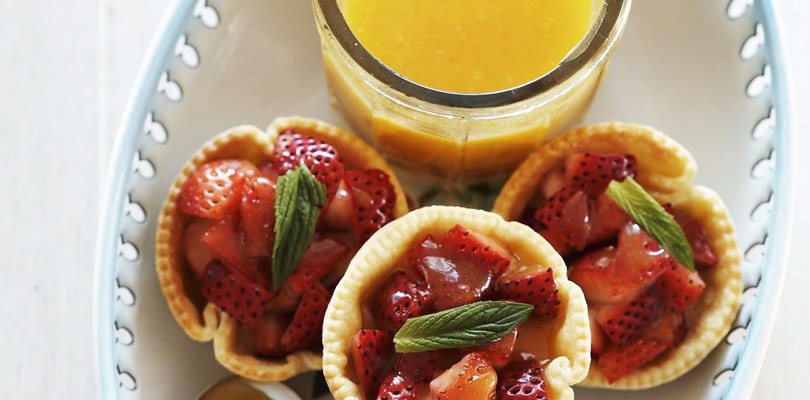 - Dans chaque fond de tarte, étaler de l’orange curd.