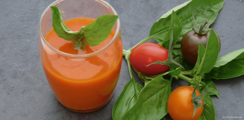 Cette soupe froide, crue, d’origine andalouse est une entrée parfaite pour commencer un repas estival. Elle convient à tous les régimes spéciaux, végétarien, végétalien, sans gluten, sans lait, sans œuf !