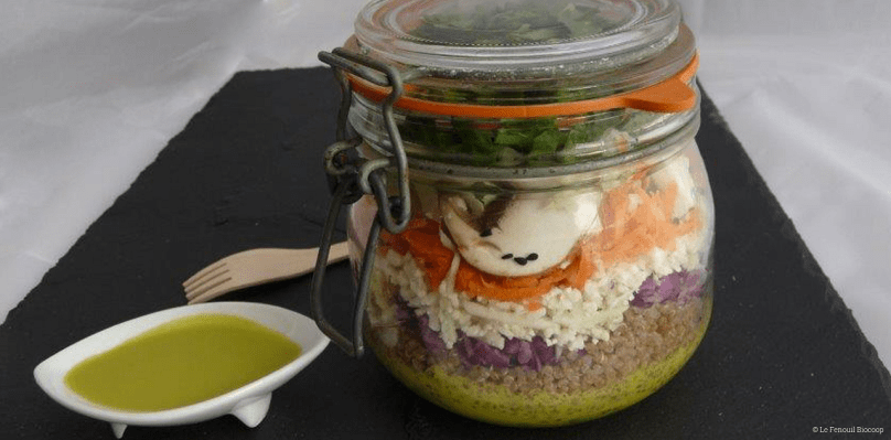 Emporter sa salade en bocal au boulot ou en pique-nique, c’est économique et écologique ! Le verre est un matériel très sain et donc parfait pour transporter des aliments.