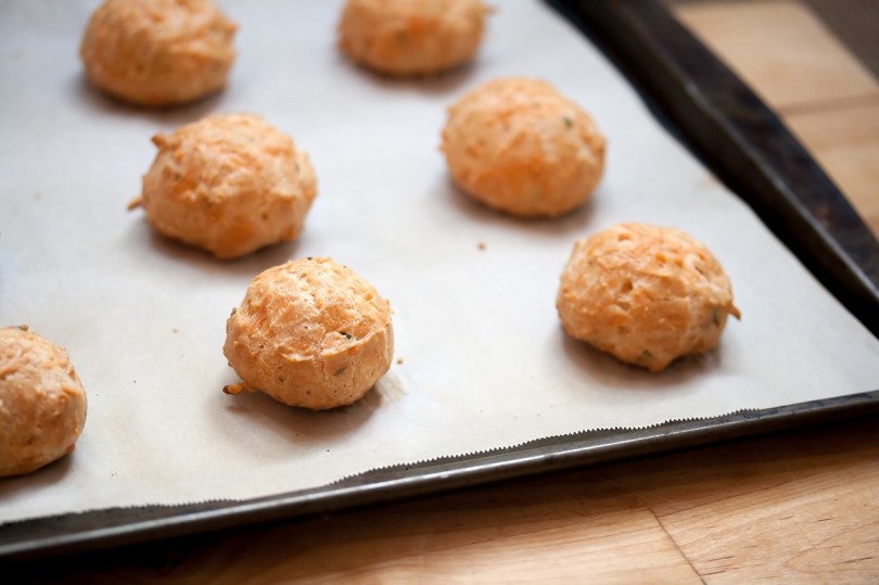 - Former les gougères à l’aide de deux cuillères (pas très grosses, elles vont gonfler !) et les déposer sur une plaque recouverte de papier cuisson.