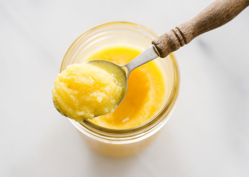 Le beurre clarifié est un corps gras intéressant à utiliser dans les préparations cuites parce qu’il est débarrassé des protéines qui pourraient brûler lors de la cuisson !