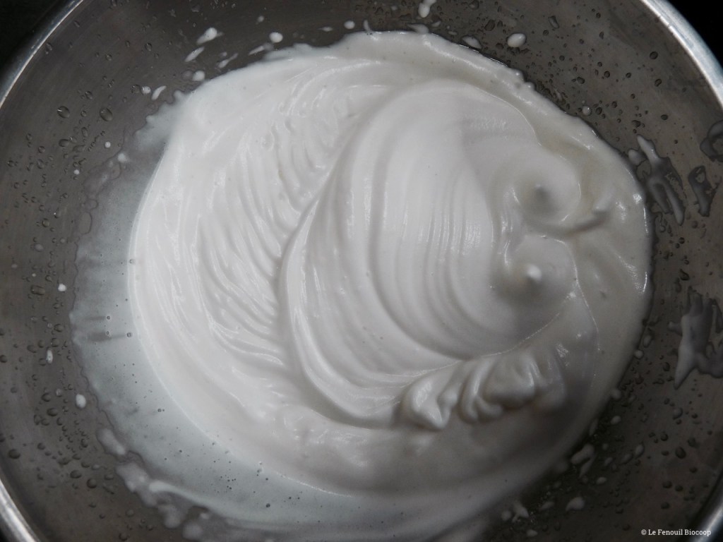 Sinon mon aquafaba n’est pas vraiment blanc comme sur la photo, plutôt crème, c’est très bon quand même. C’est très léger et digeste.