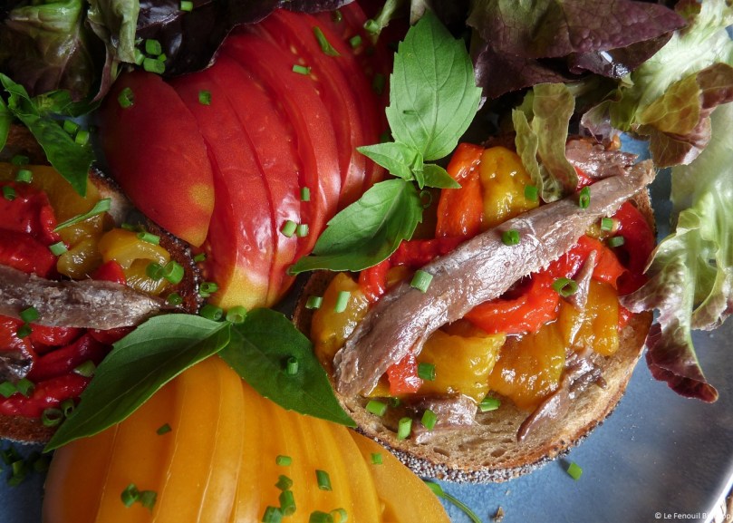 Aujourd’hui, je vous propose une recette pleine de soleil et surtout simplissime : la bruschetta aux poivrons grillés et aux anchois !