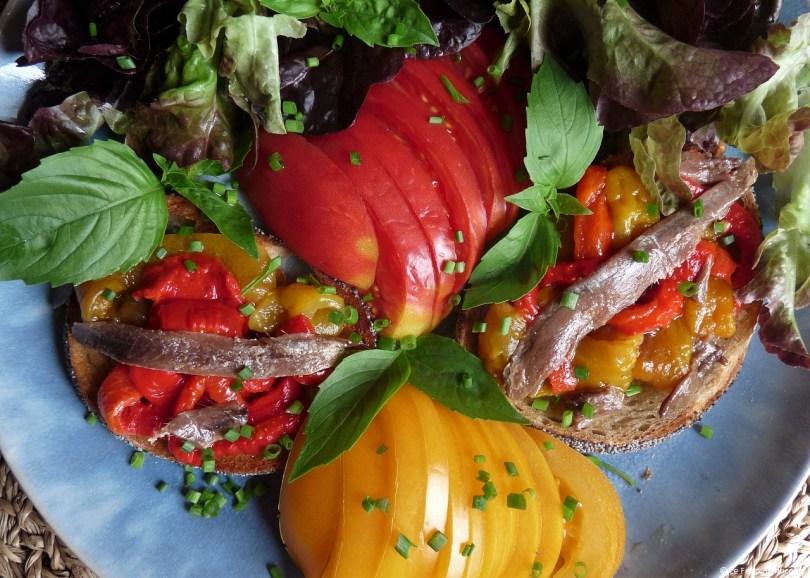 Aujourd’hui, je vous propose une recette pleine de soleil et surtout simplissime : la bruschetta aux poivrons grillés et aux anchois !