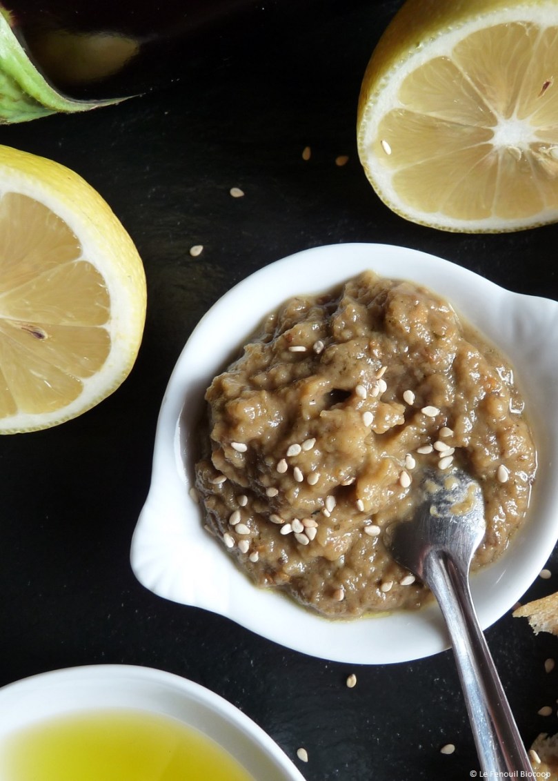 - Mixer les aubergines avec la purée de sésame, l’ail pressé, l’huile d’olive, le cumin et le jus de citron.