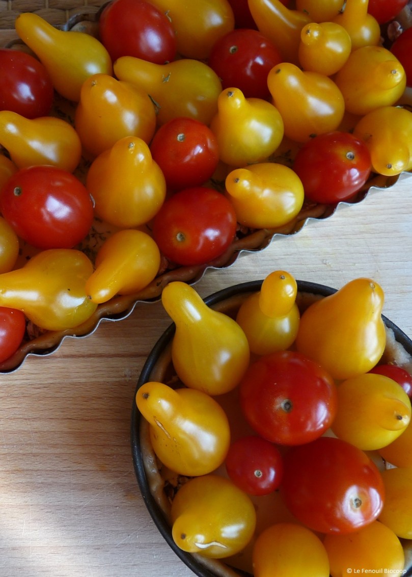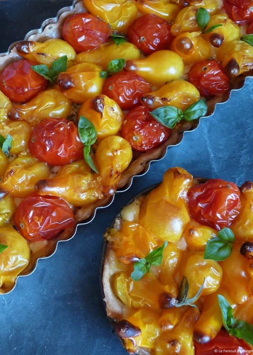 Nous sommes à la fin de l’été, les plants de tomates cerises donnent à profusion et c’est le moment de profiter de cette abondance pour se régaler de ces petites tomates confites. En plus, maintenant que la pâte brisée à l’huile d’olive n’a plus de secret pour vous, vous pourrez réaliser celle-ci en un tournemain.