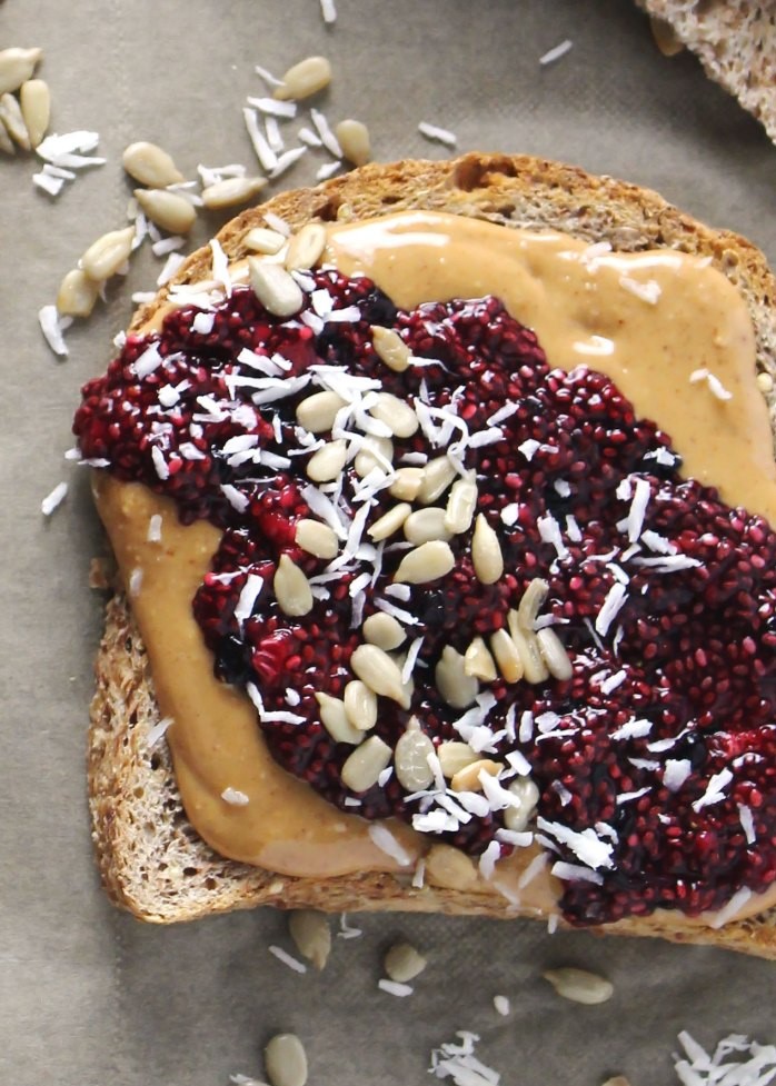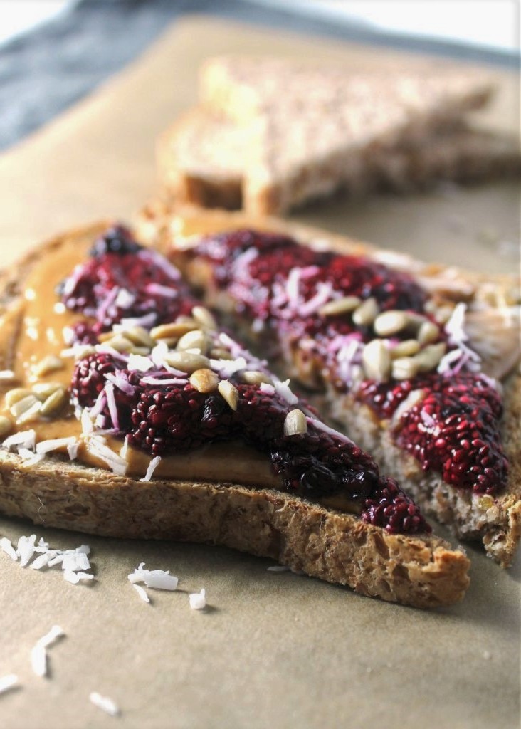 - Étaler le beurre de cacahuète sur la tranche de pain de seigle.