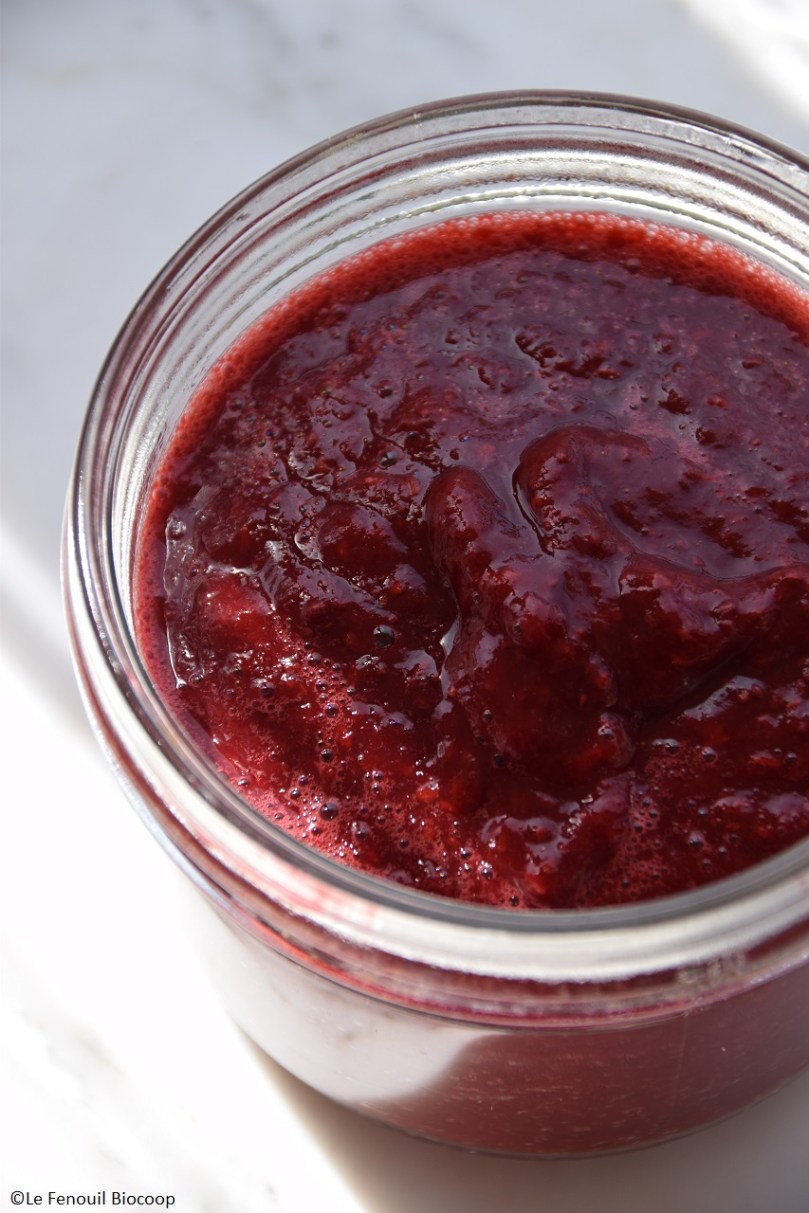 - Transvaser la préparation dans un bocal et attendre que les graines de chia gélifient la «confiture».