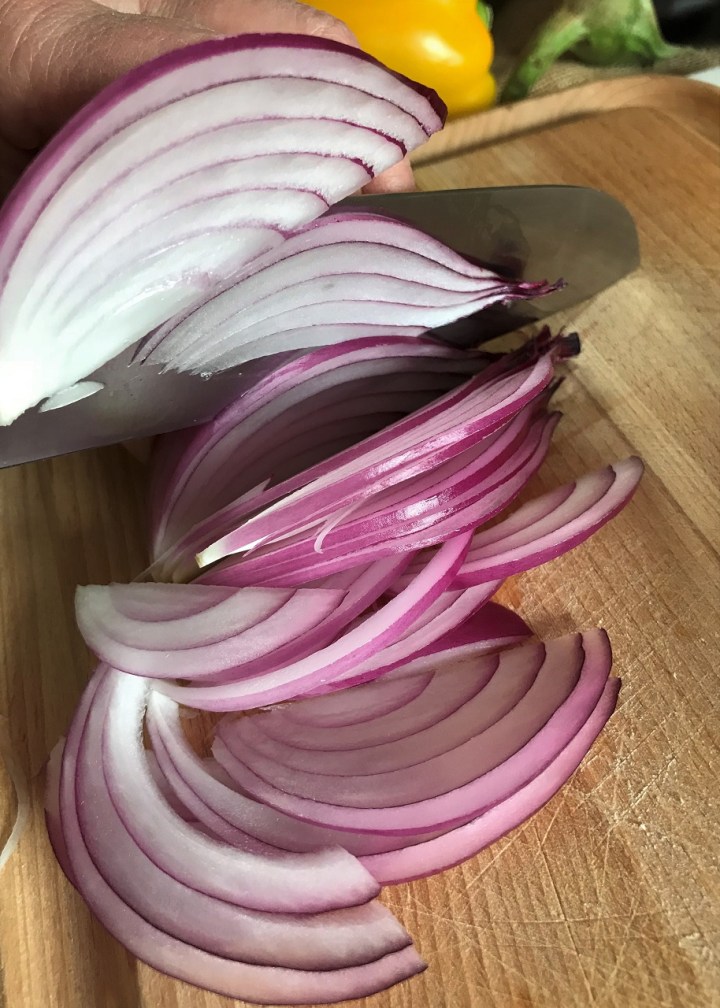 C’est un plat que je recommande aux personnes qui suivent un régime alimentaire à index glycémique bas car il est riche en fibres et pauvre en sucres (il est d’ailleurs tout à fait possible de remplacer l’oignon rouge par un oignon jaune !).