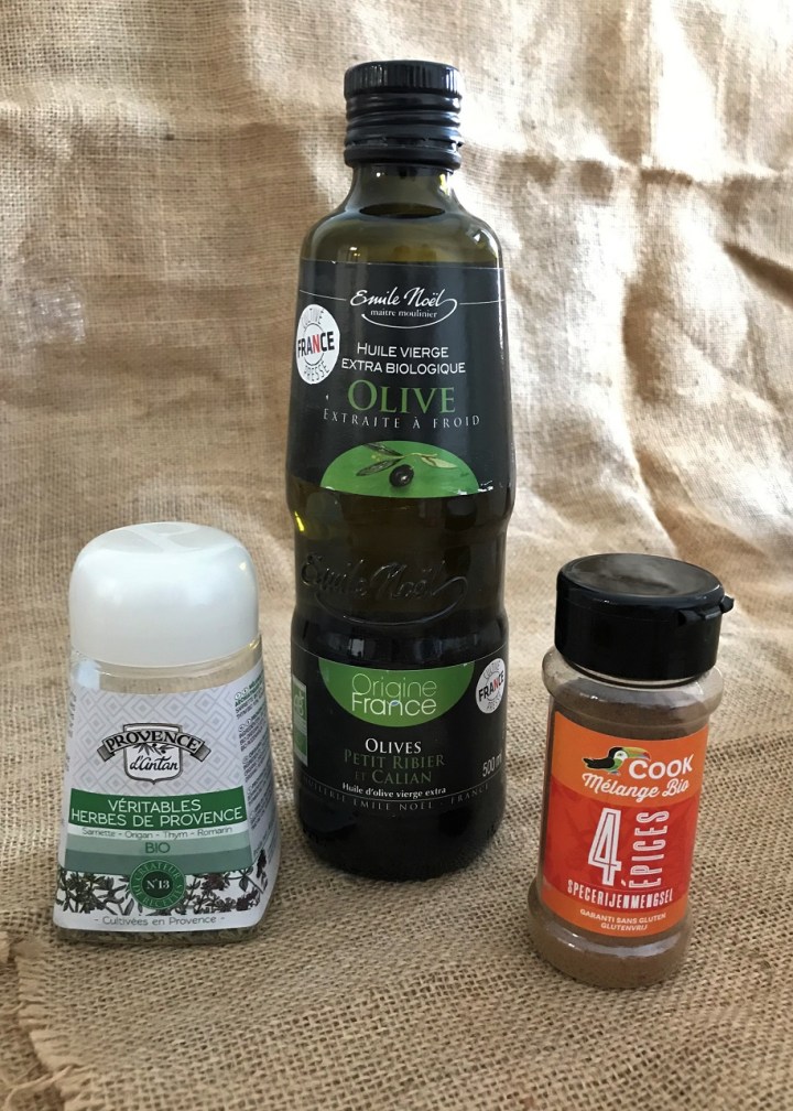 J’ai également utilisé le mélange quatre épices Cook et des herbes de Provence Provence d’Antan !