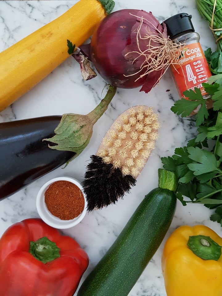 En parlant de légumes, vous l’avez peut-être aperçue sur les photos : ma brosse à légumes dont je ne peux me passer lorsque je cuisine, car elle me permet de nettoyer délicatement mes légumes et de ne pas les éplucher ; je conserve ainsi leur peau, riche en nutriments !