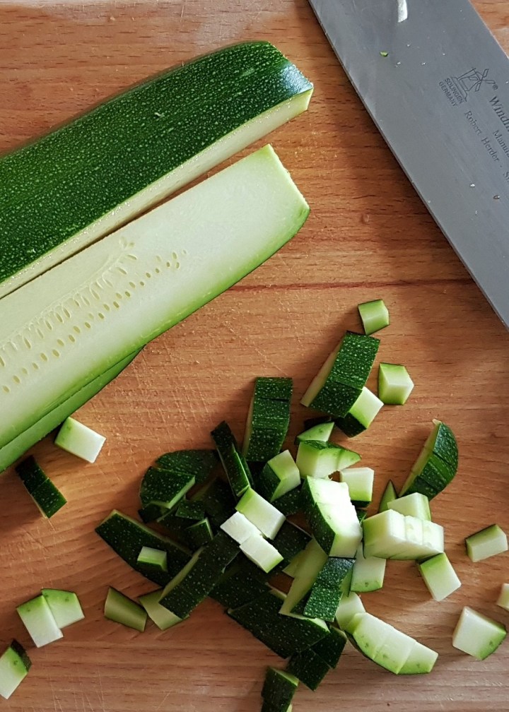 - Ajouter la macédoine de courgette et faire revenir 5 minutes.