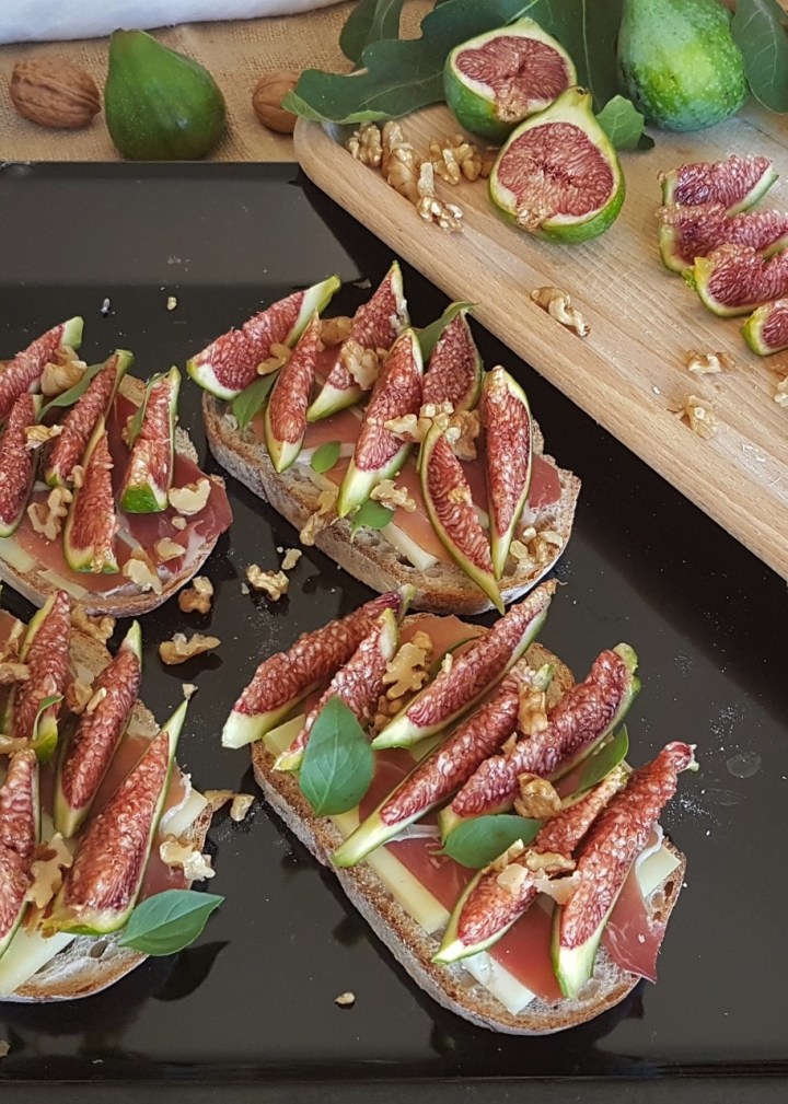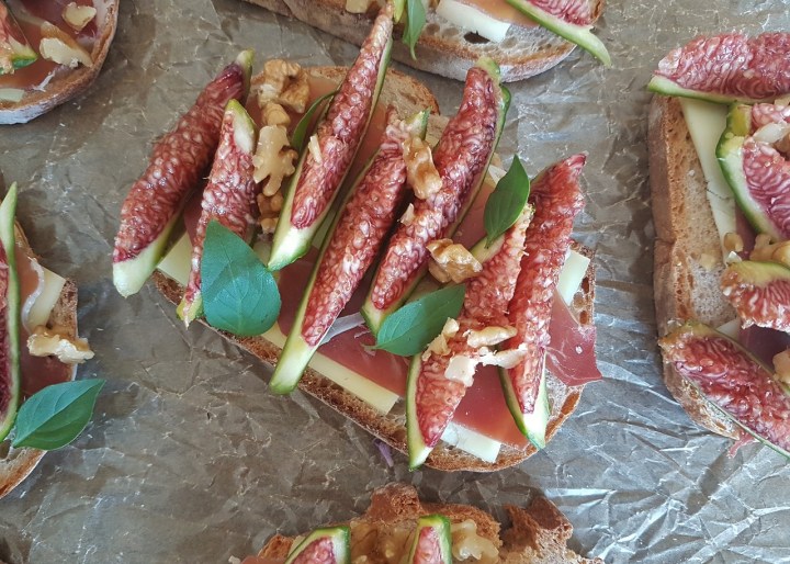 Bruschettas à la tomme de brebis, aux figues fraîches et au jambon sec