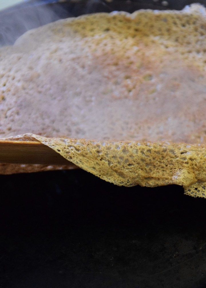 - Allonger la pâte d’un peu d’eau afin de la rendre plus fluide et cuire les galettes sur les deux faces.