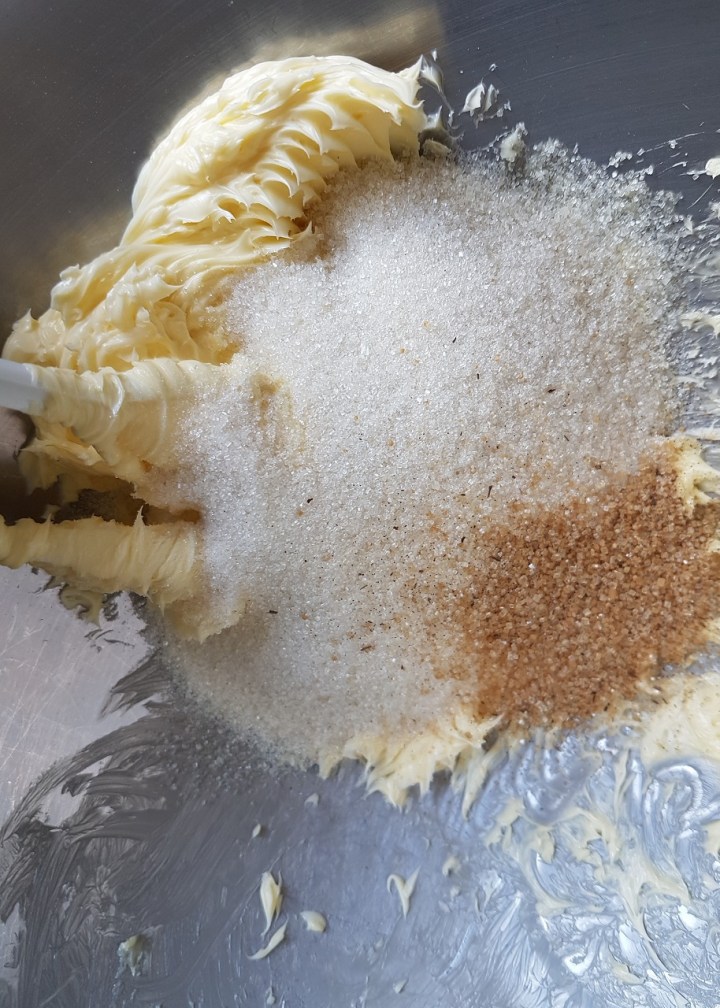 - Ajouter le sucre en poudre et le sucre vanillé, puis mélanger jusqu’à obtenir une préparation homogène.