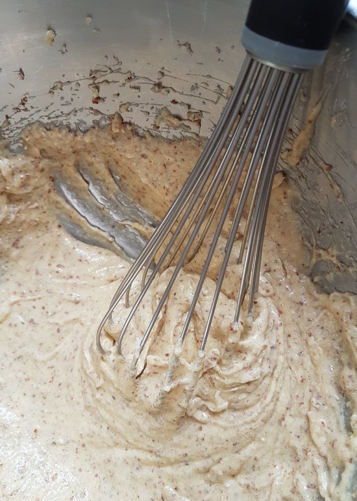 - Incorporer les œufs un à un tout en fouettant la pâte, puis ajouter la poudre d’amandes et mélanger.