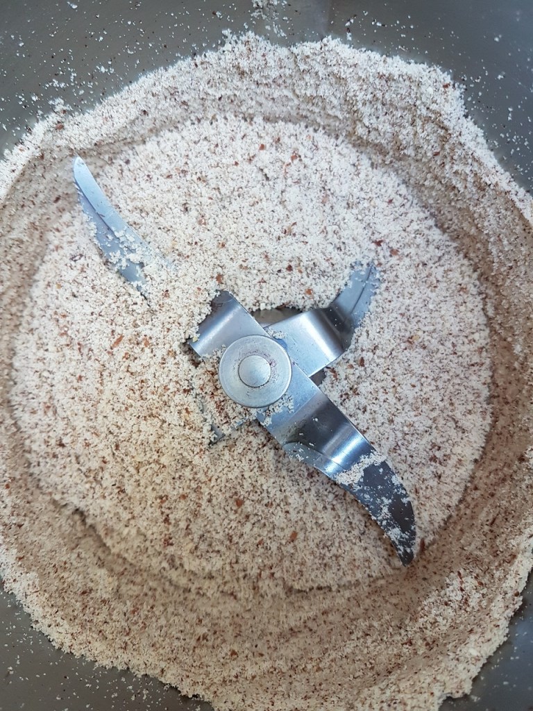- Dans un cul-de-poule, mélanger la farine, la poudre de noisette, le sucre et le sel.