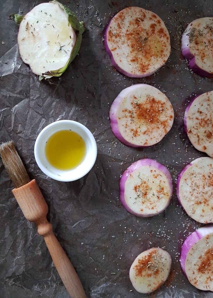 - Badigeonner chaque tranche d’huile d’olive, puis saupoudrer d’épices « grillades » Parfums d’Épices.