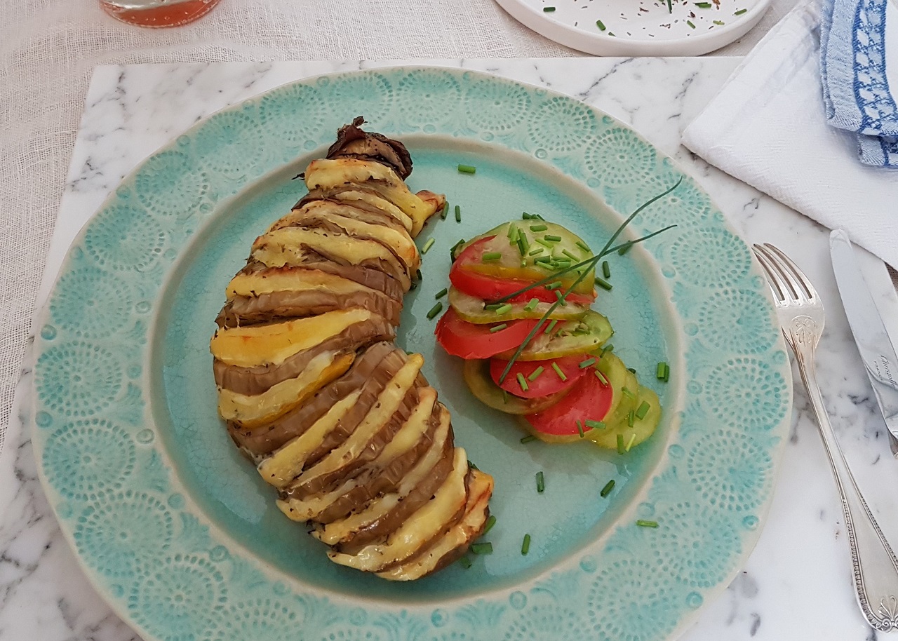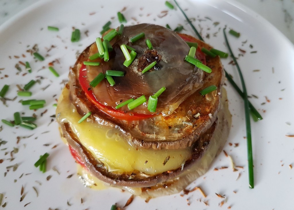 Mille-feuille d'aubergine à la tome Petite Sainte-Anne
