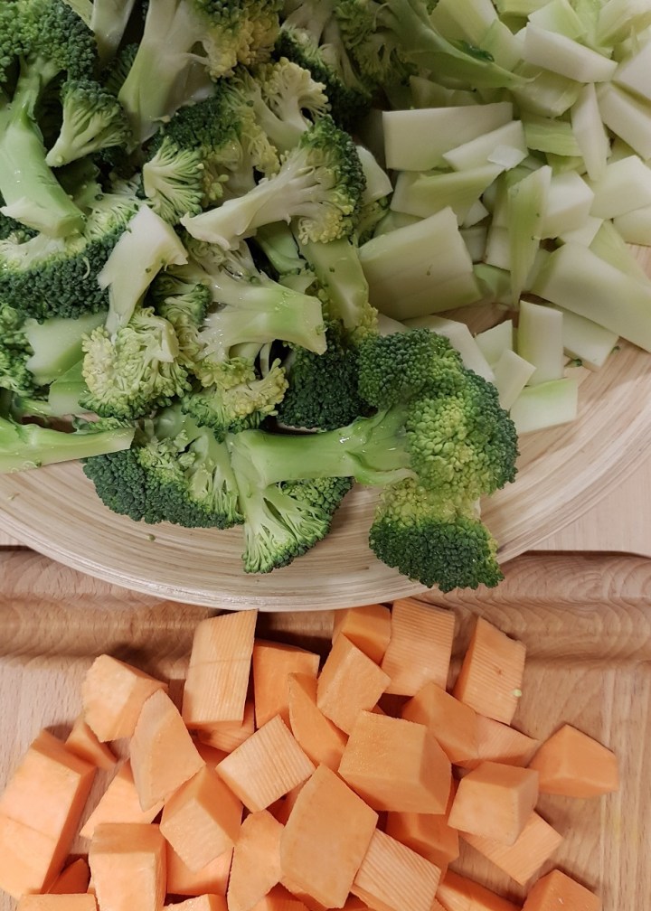 - Peler la patate douce et la couper en morceaux.