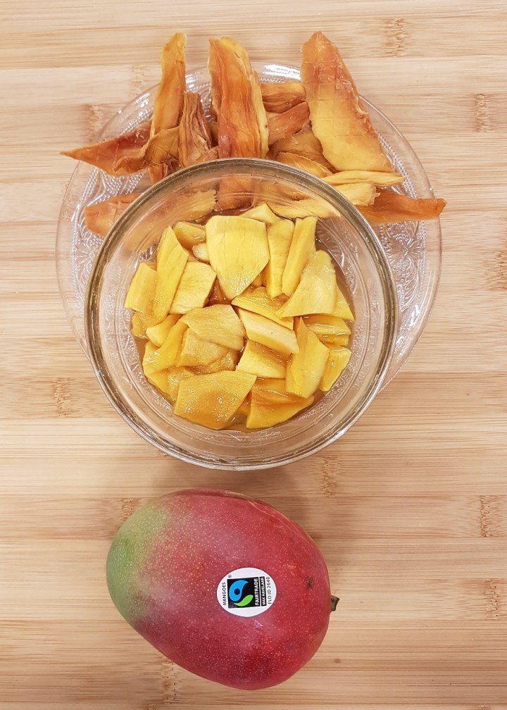 Vous serez peut-être surpris·e de constater que la mangue séchée réhydratée est très fidèle à la saveur de la mangue fraiche. Attention cependant : il ne faut pas utiliser trop d’eau pour ne pas diluer sa saveur !