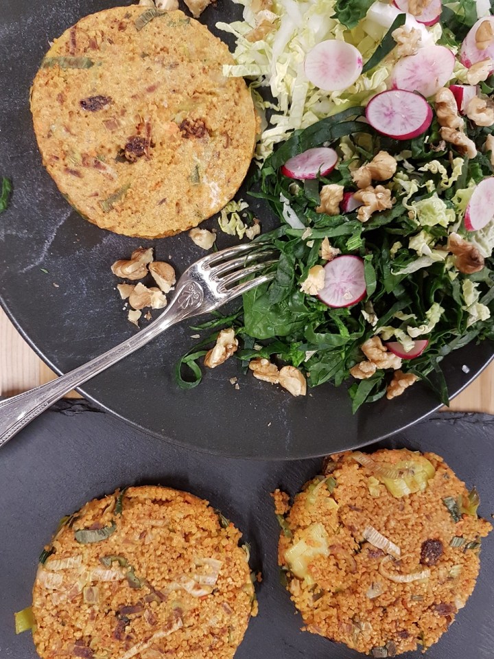 Galettes de couscous marocain au poireau et au cumin