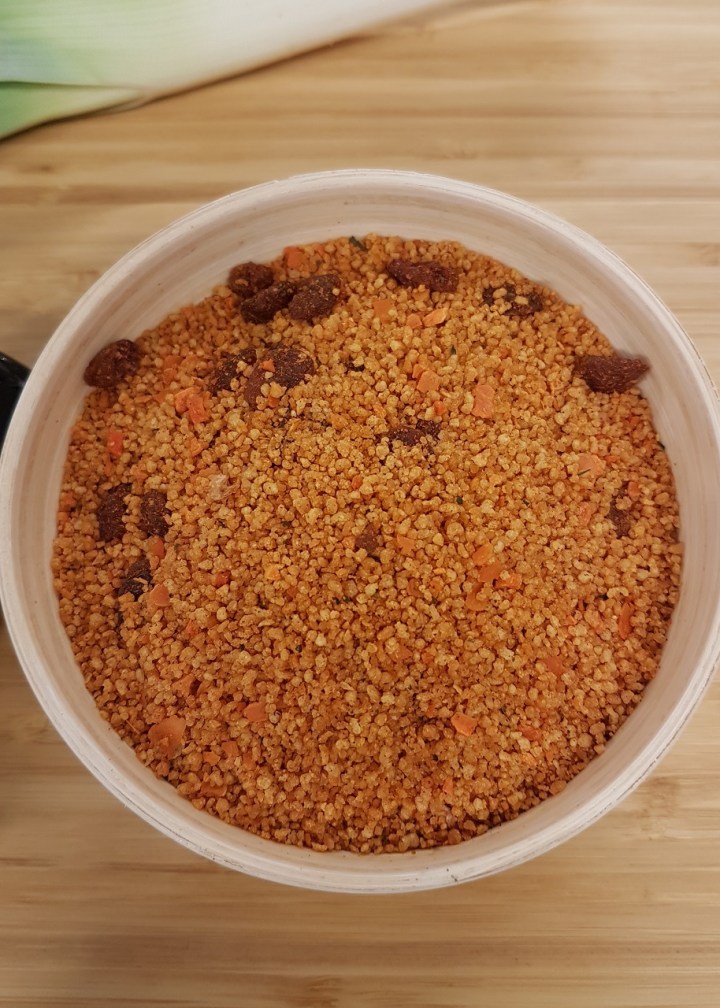 Composé de semoule complète de blé dur, de raisins secs, de carotte, d’huile d’olive, de flocons de pois chiche et d’une foultitude d’épices et d’aromates, il est absolument parfait pour réaliser des galettes végétales de céréales et de légumineuses, accompagnées d’une grande salade de verdure. Un repas simple, rapide à préparer et très digeste !