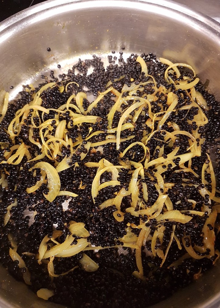 Dans cette recette que je trouve extrêmement savoureuse, j’ai choisi d’utiliser la lentille beluga de notre producteur local La Patte Jeanjean. Tout de noir vêtue, ronde, lisse et brillante : son look bluffant charme au premier coup d’œil ! Cette variété jouit d’ailleurs d’une excellente réputation et du surnom flatteur de « caviar végétal ».