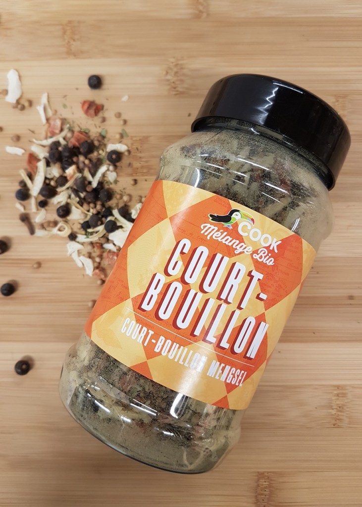 J’adore le mélange d’épices et d’aromates pour court-bouillon Cook, il est extrêmement parfumé et je l’utilise pour aromatiser les cuissons dans l’eau : poissons, pot-au-feu, poule au pot, coquillages ou tout simplement pour réaliser un bouillon de légumes !