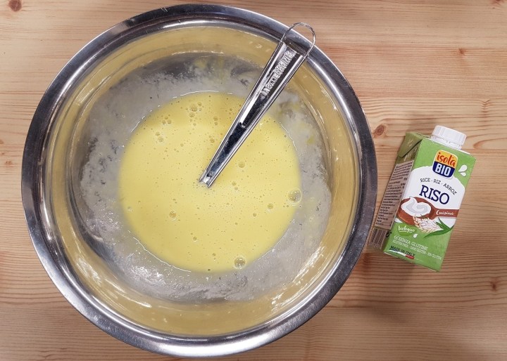 - Dans un cul-de-poule, casser les œufs et les battre avec la crème végétale.