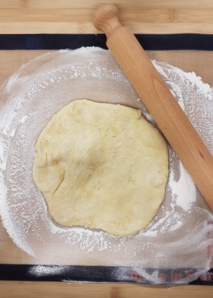 Astuce : pour obtenir une pâte souple et facile à étendre au rouleau, ajouter de l’eau tiède (environ 70°C).