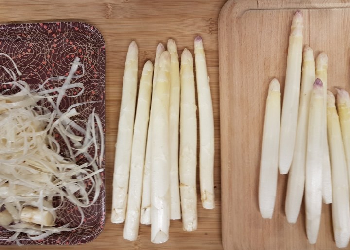 L’indice de fraicheur d’une asperge, c’est sa pointe souple et sa peau lisse. Pour préparer une asperge, il suffit d’en casser le talon et de la peler délicatement à l’économe jusqu’à quelques centimètres de la pointe.