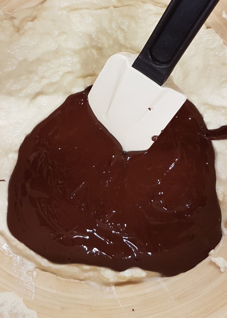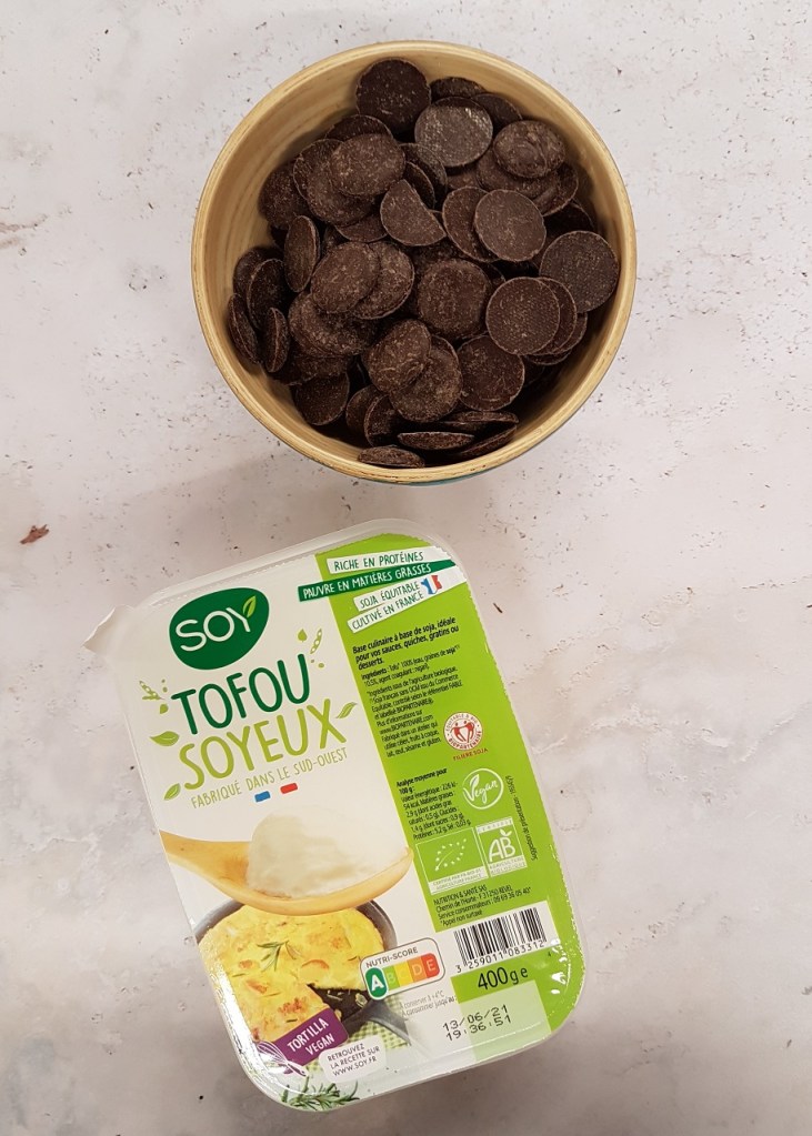- Mixer le tofu soyeux avec le chocolat fondu, puis ajouter la moitié des pistaches et réserver.