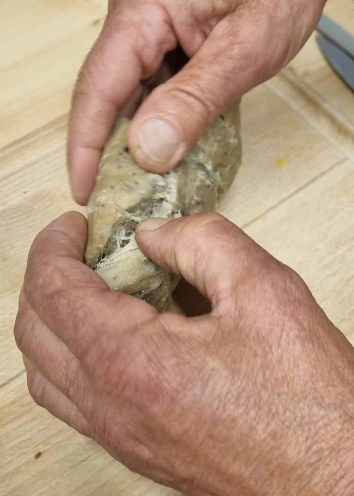 Marc y ajoute des farines de pois chiche et de manioc, ainsi que des épices bio. Il façonne ses pâtons en blocs ou en tresses et il les cuit au four à vapeur. Une fois refroidis, il les effiloche pour obtenir un excellent seitan !