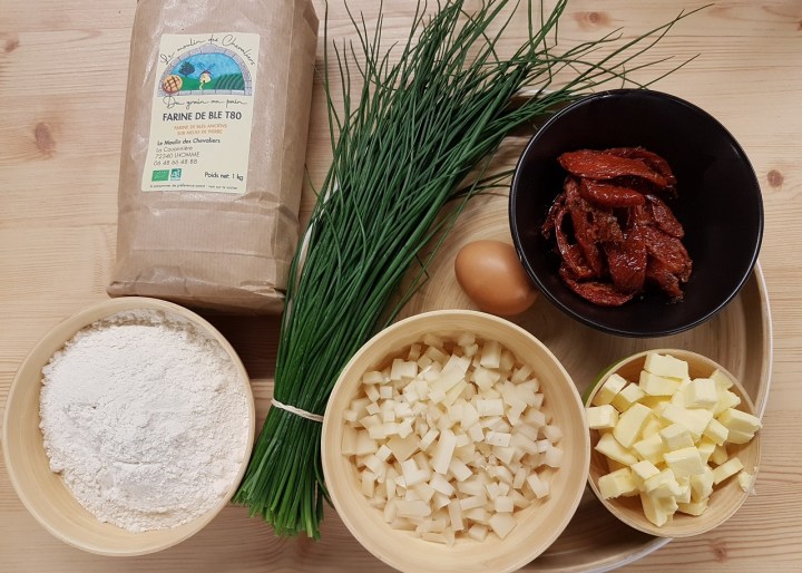 Nous vous proposons une recette simplissime pour accompagner vos moments de convivialité : des biscuits apéritifs moelleux et savoureux à la tome de chèvre, aux tomates séchées et à la ciboulette.