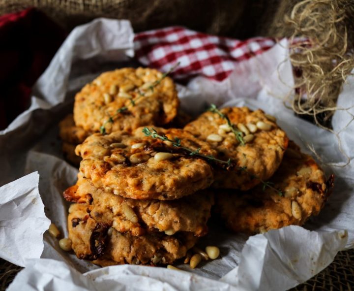 Sablés apéritifs à la tome de chèvre, aux tomates séchées et à la ciboulette