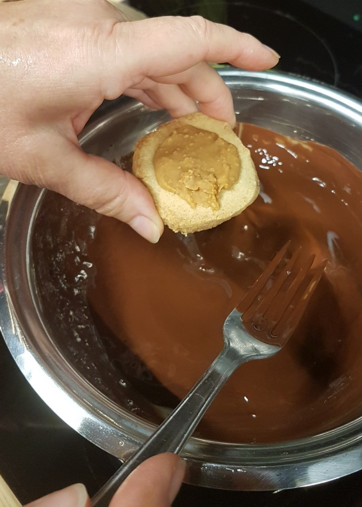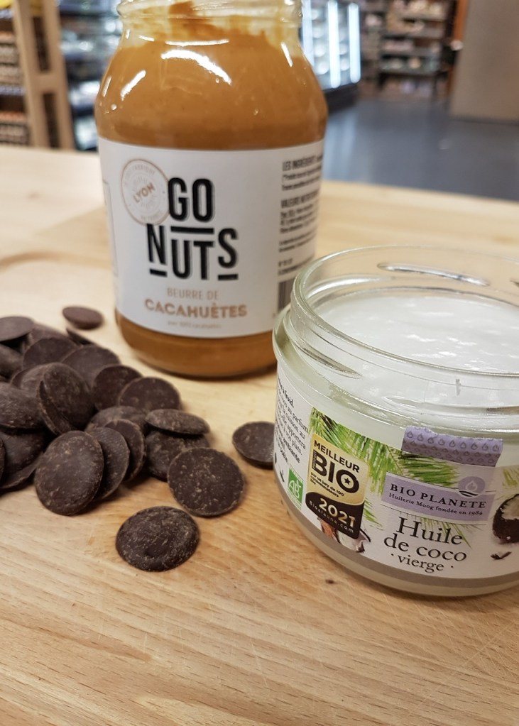- Refroidissement et légère congélation (simplement pour durcir le beurre de cacahuètes)