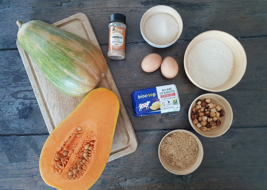 - de la poudre de noisettes bio pour aérer la structure des muffins, étant donné que la courge est plutôt humide,
