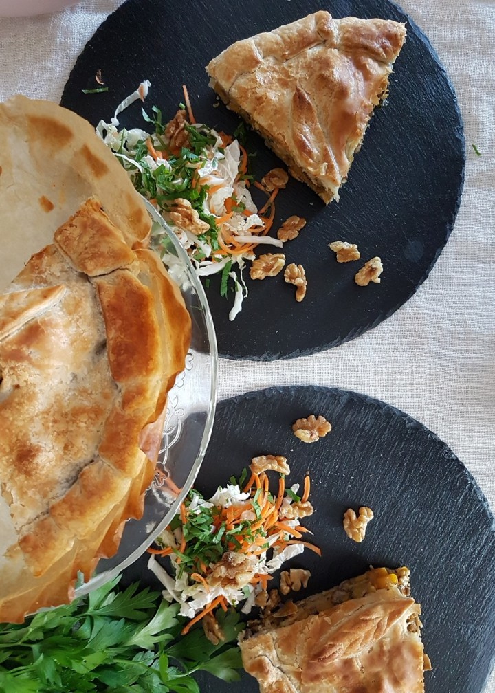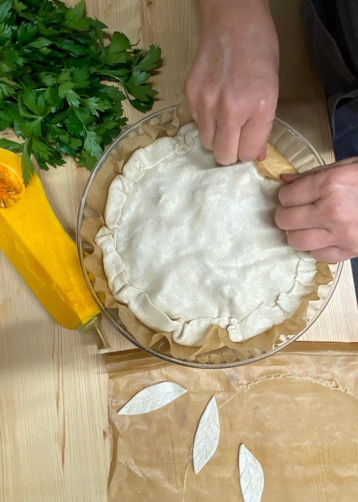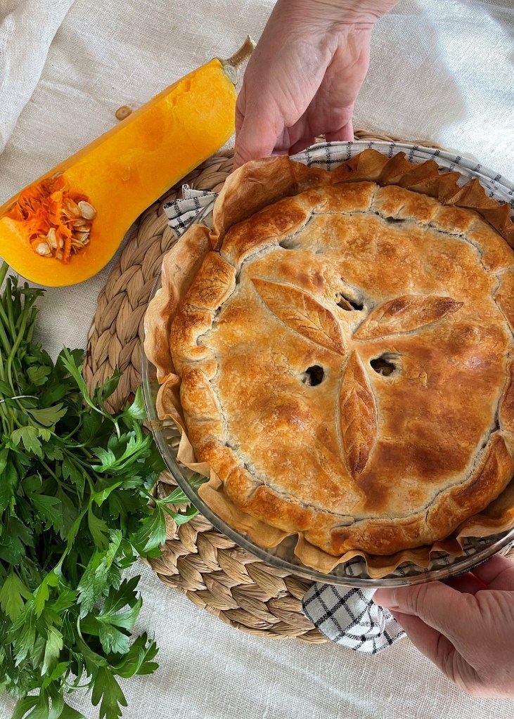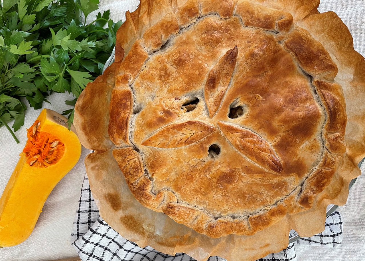 Tourte vegan au seitan, aux champignons et à la courge butternut