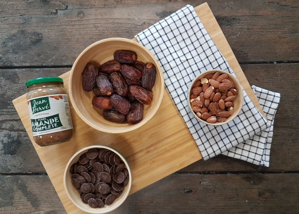 Laissez-vous tenter par une douceur gourmande à base de dattes, de purée d’amande, de chocolat noir et d’amandes grillées concassées : quatre ingrédients pour une recette simplissime.