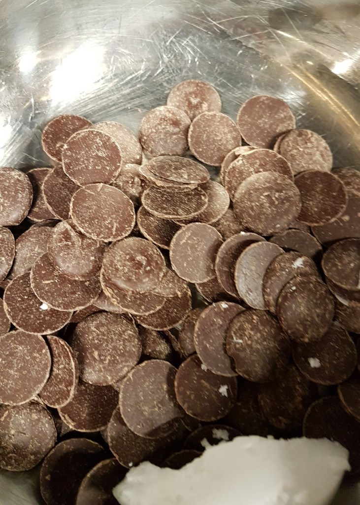 - 100 g de palets de chocolat noir Kaoka (ou de chocolat de couverture Rapunzel)