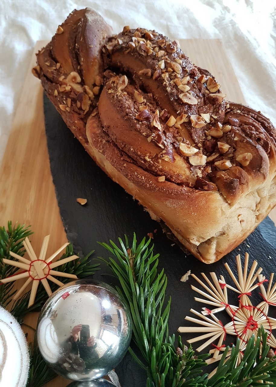 Babka vegan au chocolat et aux noisettes (brioche tressée polonaise)