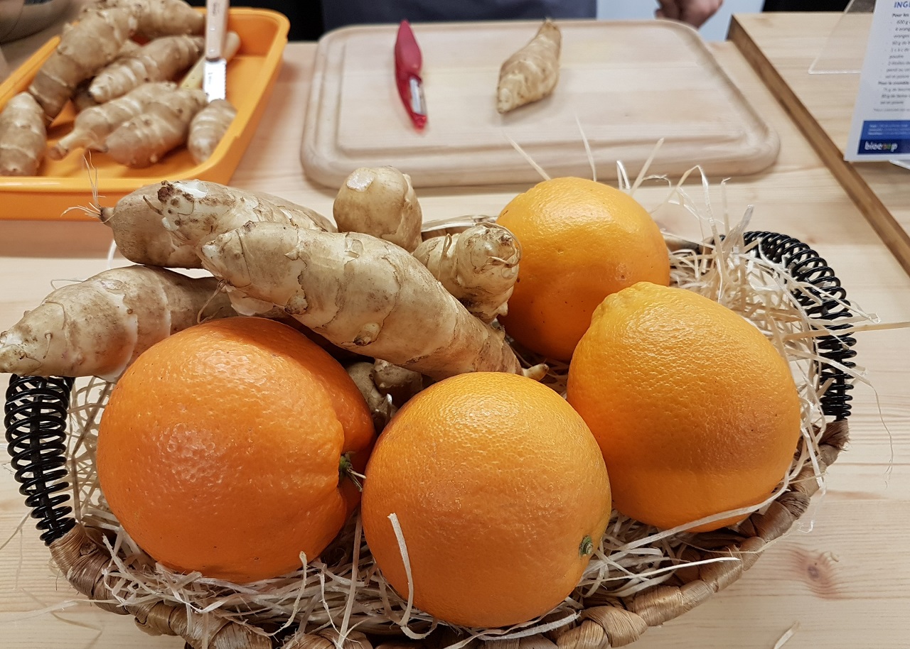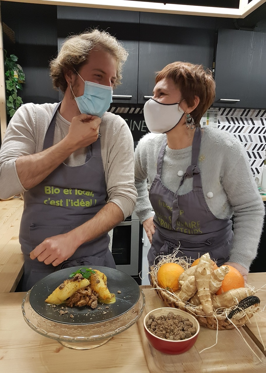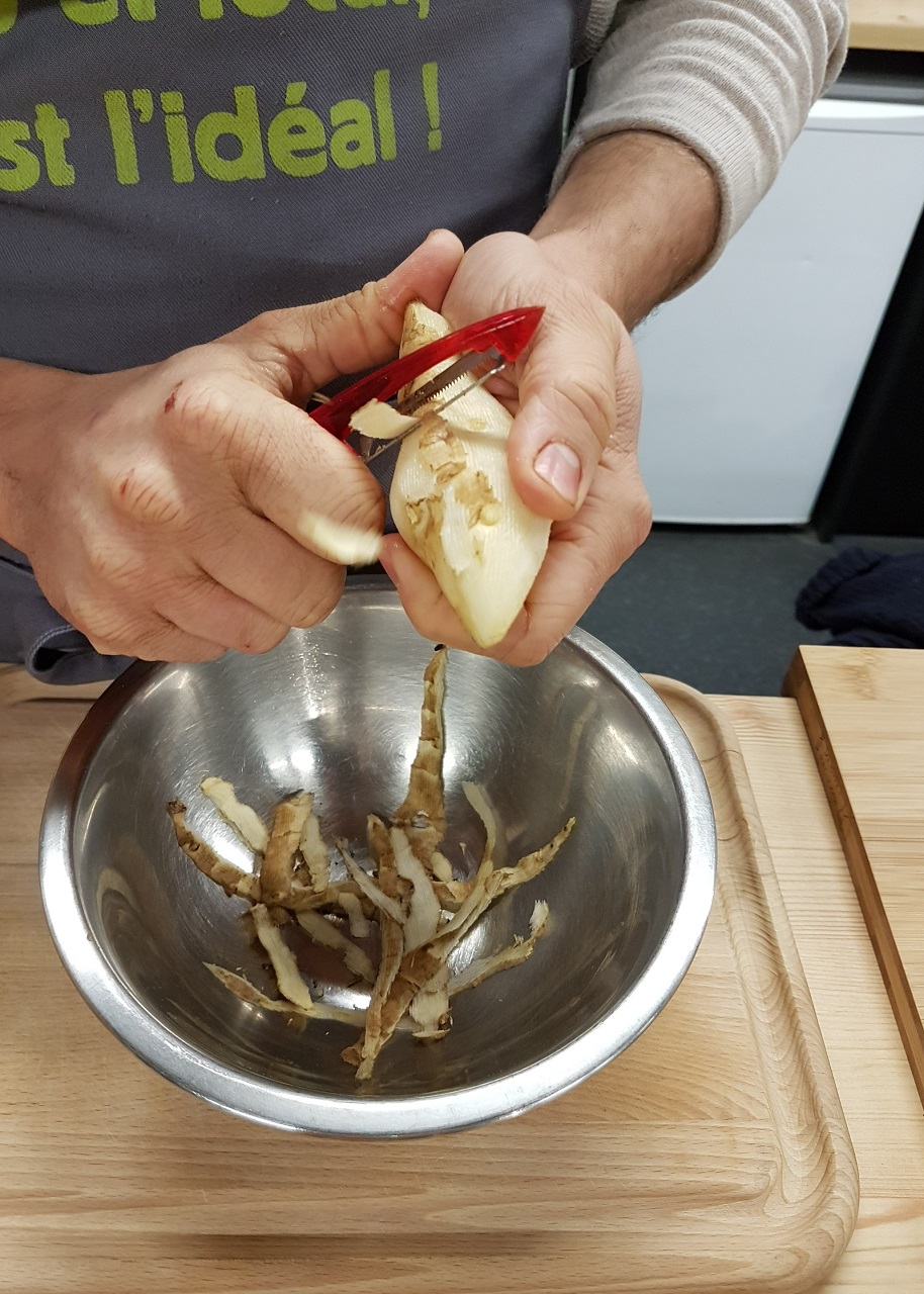 C’est avec un immense plaisir que j’ai à nouveau reçu Léandre, maraîcher et cuisinier de formation, dans l’espace animation du Fenouil Sargé pour réaliser cette recette et présenter l’héliantis, un légume oublié proche du topinambour à la délicate saveur d’artichaut.