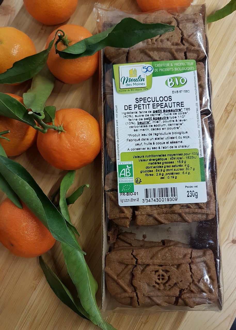 - 4 spéculoos de petit épeautre* Moulin des Moines (ou en vrac) *peut contenir des allergènes