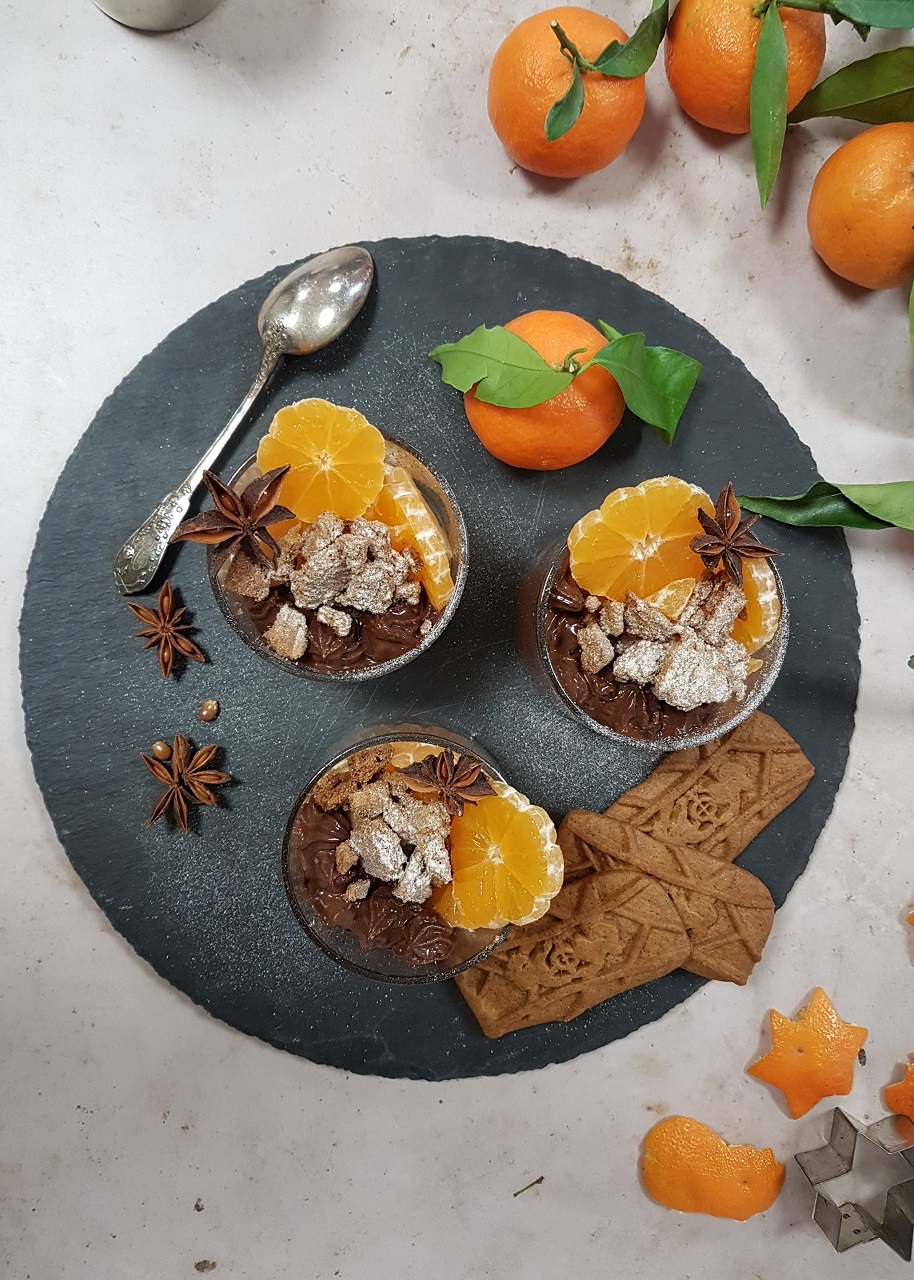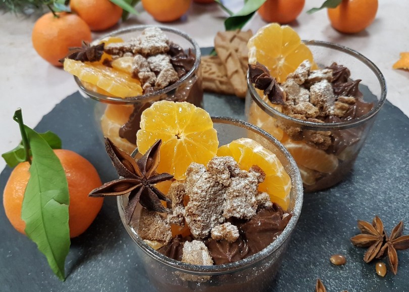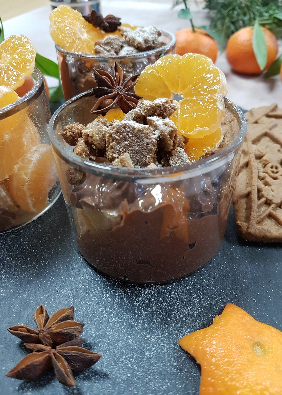 Verrines de mousse au chocolat noir aux clémentines et aux spéculoos