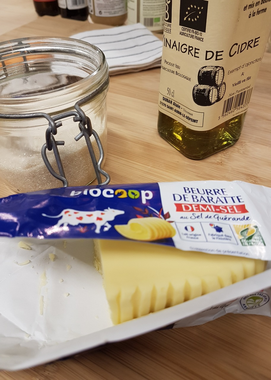 - 50 g de beurre* ½ sel Biocoop (ou du GAEC de la Pie en vrac)