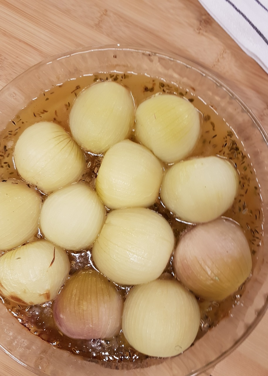 - Disposer les demi-oignons face coupée sur le caramel, puis enfourner à 180°C pendant 20 minutes.