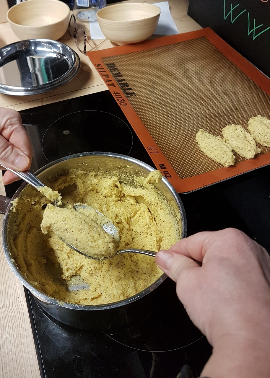- Former des quenelles à l’aide de deux cuillères à soupe en faisant glisser la semoule d’une cuillère à l’autre et les déposer dans un plat à four, puis réserver.