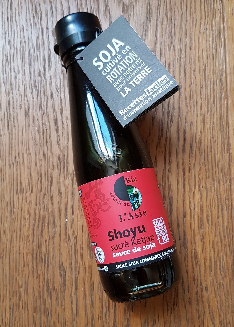 Pour parfumer mes légumes, j’ai utilisé la délicieuse sauce soja sucrée Ketjap d’Autour du Riz, une sauce shoyu élaboré de façon traditionnelle avec une fermentation de 4 à 8 mois sans ajout d’alcool que je vous avais déjà présentée dans de précédentes recettes :