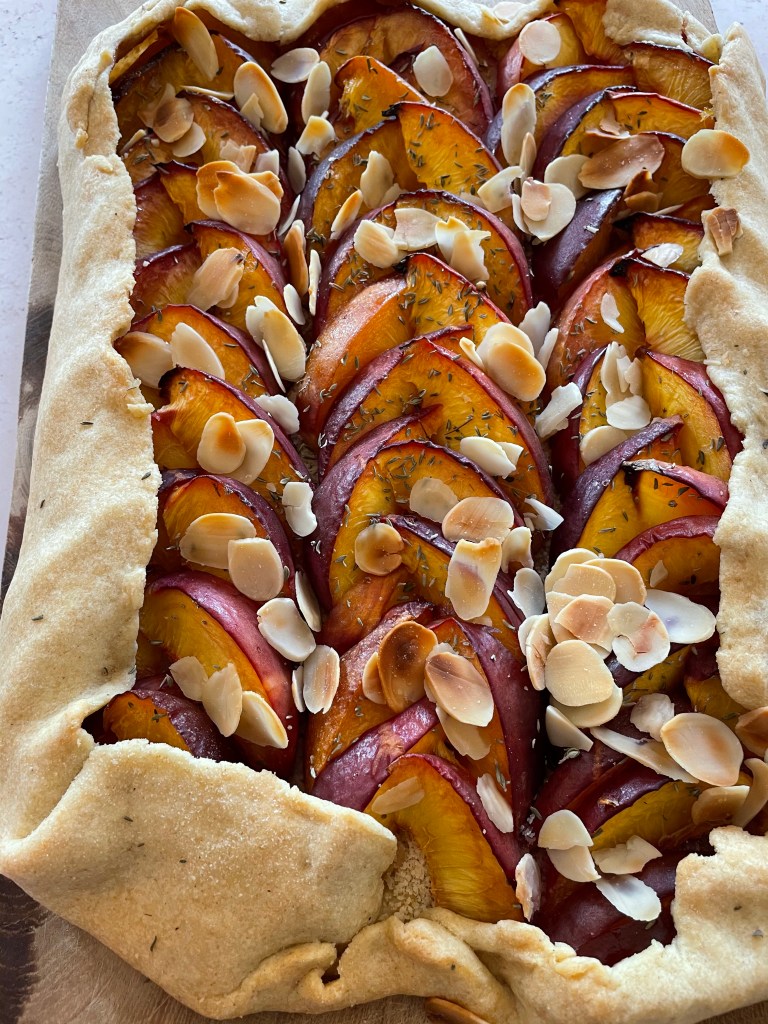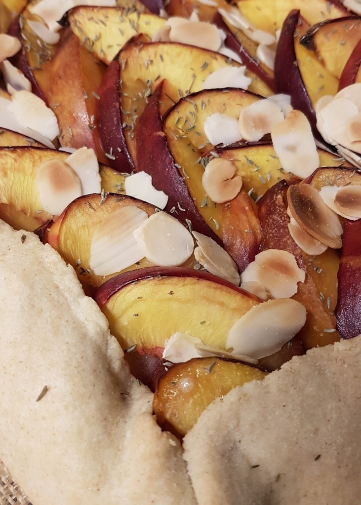 Tarte rustique aux nectarines, au thym citronné et aux amandes (sans sucre ajouté)